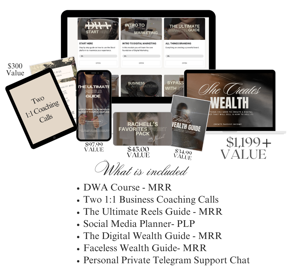 The course teaches you high value Digital Marketing skills that you can implement to resell the DWA course, or launch any new business.